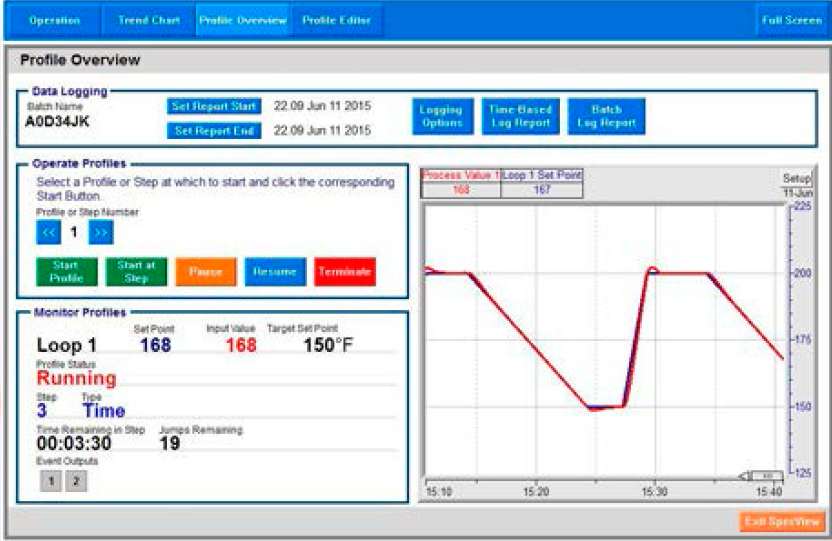 • Control táctil con resguardo de datos y gráfico de tiempo real.